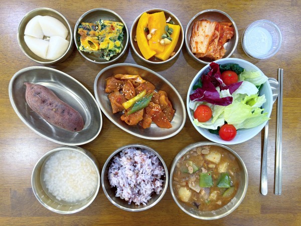 잡곡밥/ 누룽지/ 청국장찌개/ 제육볶음/