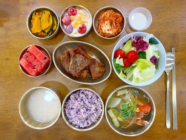 잡곡밥/ 누룽지/ 꽃게탕/ 바베큐폭립/