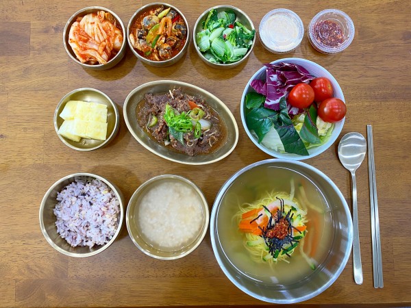 소불고기/ 소라살무침/ 얼갈이나물/