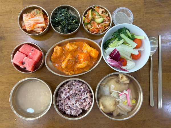 잡곡밥/ 누룽지/ 유부주머니국/ 로제찜닭/
