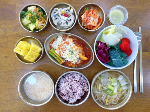 얼갈이겉절이/ 김치/ 계절샐러드/ 파인애플