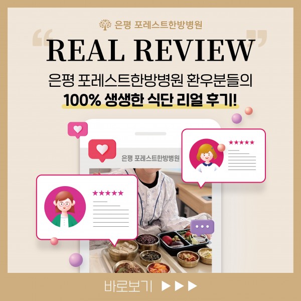 은평 포레스트한방병원 식단 후기 [게시글 내용] 안녕하세요 포레스트입니다:) 은평 포레스트한방병원 환우분들의 100%생생한 식단 리얼 후기를 소개합니다! 은평 포레스트한방병원은 맛있는 식사로 소문이 자자합니다! 실제 베스트 후기를 선정해서 안내드립니다~! 환우분들의 건강을 위해서 포레스트는 아낌없는 투자와 끝없는 노력하겠습니다♡ 목록