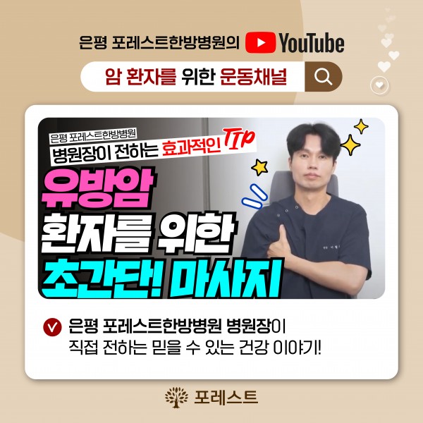 유방암 환우분들을 위한 맞춤형 마사지 운동법을 영상으로 확인해보세요:)