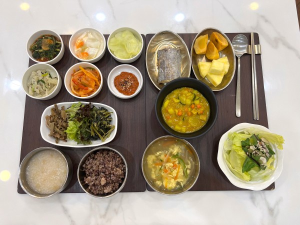 1월 7일 항암식단 [1/7 화요일 중식] 잡곡밥/누룽지/몽실몽실계란국/갈치구이*와사비장/ 카레라이스(라이브)/실곤약야채무침/들깨무나물/ 절단상추*토란대나물*유채나물/양배추쌈/ 김치&물김치/계절샐러드/파인애플&감 목록