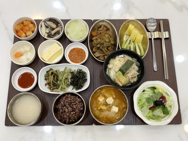10월 14일 항암식단 [10/14 월요일 중식] 잡곡밥/누룽지/김치콩나물국/간장돈불고기/ 명란계란찜/버섯초회*초고추장/닭칼국수/ 건시래기나물*궁채나물*건곤드레나물/ 양배추쌈/김치&물김치/계절샐러드&파인애플*키위 목록