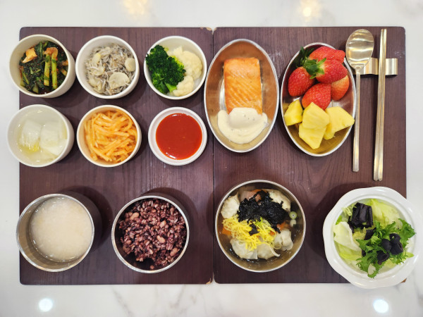 잡곡밥/누룽지/물만두국/연어구이&렌치소스/