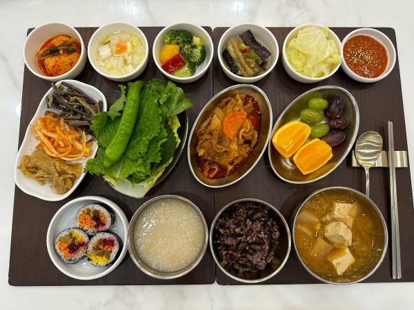 4월 19일 항암식단 [4/19 금요일 중식] 잡곡밥/누룽지/청국장/제육볶음&모둠쌈채/ 브로컬리참깨소스무침/가지양념찜/ 도라지생채*고사리나물*묵은지지짐/ 석박지&물김치/계절샐러드/ 포도&오렌지/(라이브)뿌리채소김밥 목록