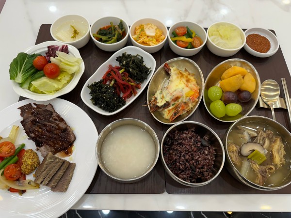 12월 25일 항암식단 [12/25 월요일 중식] 잡곡밥/누룽지/한방갈비탕/ 타이거새우오븐치즈구이/ 토마토그린빈유자청무침/ 알배기겉절이/열무&물김치/ 계절샐러드/샤인머스켓&감/ (라이브)채끝&양지스테이크 목록