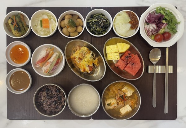 7월 13일 항암식단 [7/13 목요일 중식] 잡곡밥/(라이브별식) 월남쌈/ 누룽지/돈육김치찌개/ 오븐가지그라탕&웨지감자/ 메추리알장조림/유채나물무침/ 오이소박이/계절샐러드/ 수박&파인애플 목록