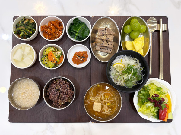 11월 25일 항암식단 [11/25 화요일 중식] 잡곡밥/누룽지/얼큰콩나물국/돈목살간장조림/ 북어채무침/애호박볶음/쌀국수(라이브)/ 케일숙쌈/김치&물김치/계절샐러드/ 파인애플&샤인머스켓 목록