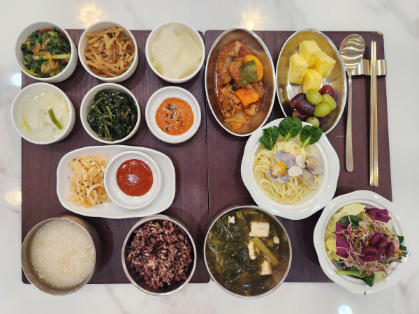 7월 4일 항암식단 [7/4 금요일 중식] 잡곡밥/누룽지/무청시래기된장국/오리도리탕/ 쥐어채볶음/깻잎나물/봉골레파스타(라이브)/ 무생채/양배추쌈/김치&물김치/계절샐러드/ 파인애플&포도 목록