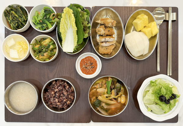 오이미나리초무침/비타민나물/김치&물김치/계절샐러드/파인애플&배