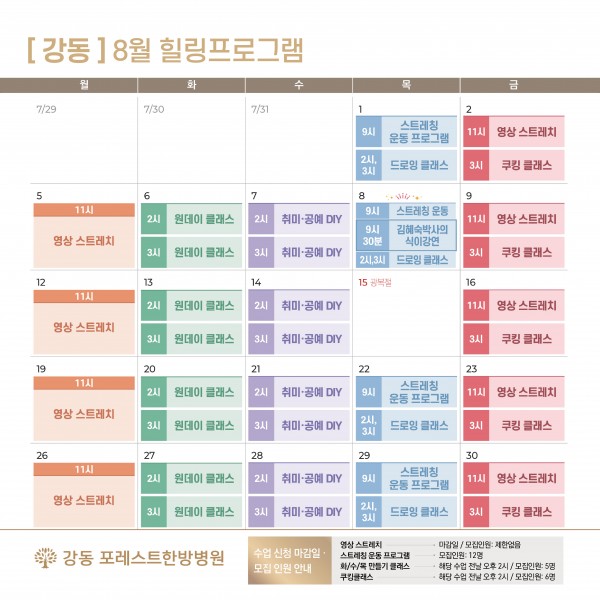 포레스트의 힐링프로그램들과 함께 행복한 8월 되시기 바랍니다.