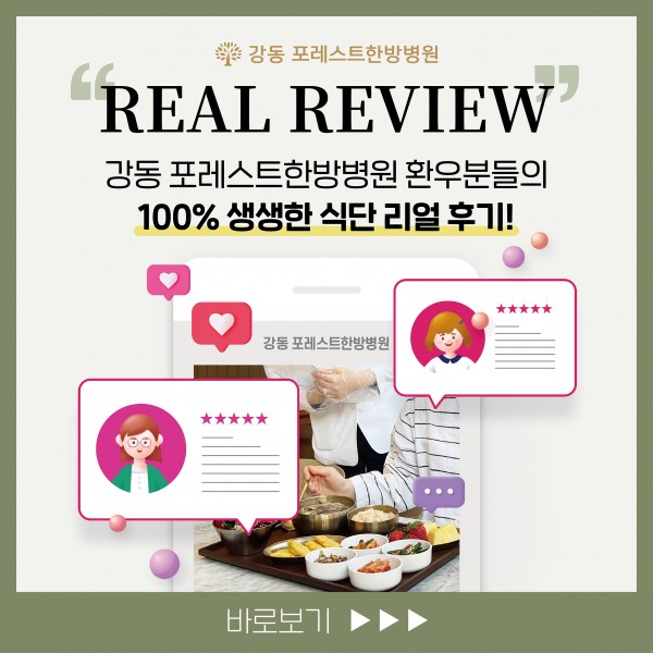 강동 포레스트한방병원 식단 후기 안녕하세요 포레스트입니다:) 강동 포레스트한방병원 환우분들의 100% 리얼 식단 후기를 소개합니다. 강동 포레스트는 환우분들의 입맛을 사로잡을 뿐만 아니라 영양까지 놓치지 않겠습니다! 환우분들 한 분 한 분의 마음을 헤아리며, 친절하고 세심한 서비스를 제공하기 위해 최선을 다하겠습니다♡ 목록