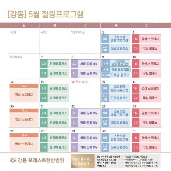 포레스트의 5월 힐링프로그램을 소개합니다!