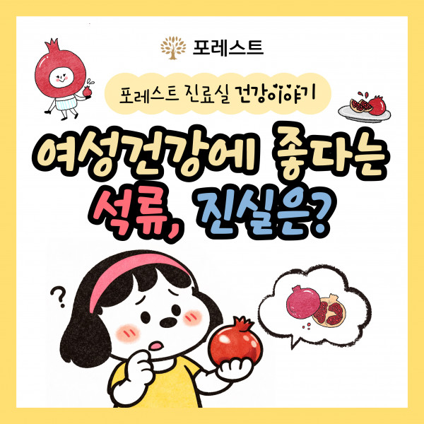 [포레스트 건강이야기] 여성에게 좋다던 석류, 정말 모두에게 괜찮을까요? 여성에게 좋다던 석류, 정말 모두에게 괜찮을까요? ‘여성의 과일’이라는 말만 믿기 전에 내 몸엔 어떤지 먼저 확인! 나에게 맞는 건강 기준이 필요할 때 포레스트와 함께 내 몸에 맞는 관리부터 시작해보세요 목록