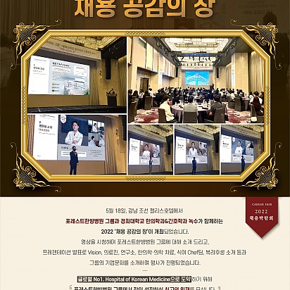 자궁내막암 3기, 박지혜 환우님의 희망일지 ep_1 | 포레스트 환우 이야기 2024.08.08 자궁내막암 3기, 박지혜 환우님의 희망일지 ep_2 | 포레스트 환우 이야기 2024.08.08 자궁내막암 3기, 박지혜 환우님의 희망일지 ep_3 | 포레스트 환우 이야기 2024.08.08 폐암 4기(비소세포암), 서중원 환우님의 희망일지 ep_1 | 포레스트 환우 이야기 2024.08.08 폐암 4기(비소세포암), 서중원 환우님의 희망일지 ep_2 | 포레스트 환우 이야기 2024.08.08 폐암 4기(비소세포암), 서중원 환우님의 희망일지 ep_3 | 포레스트 환우 이야기 2024.08.08 Hot 포레스트한방병원 그룹X경희대학교 녹수 ‘채용 공감의 장’ 영상 5월 18일에 진행 되었던, 포레스트한방병원 그룹과 경희대학교 한의학과&간호학과 녹수가 함께하는 2022 ‘채용 공감의 장… 2022.05.27 Hot 포레스트한방병원 그룹X경희대학교 녹수 ‘채용 공감의 장’ 5월 18일, 강남조선팰리스호텔 에서 포레스트한방병원 그룹과 경희대학교 한의학과&간호학과 녹수가 함께하는 2022 ‘채… 2022.05.25 Hot 포레스트한방병원 그룹 총괄 김성호 Chef님 포레스트한방병원의 건강하고 맛있는 식단을 책임져 주시는 20년 경력의 포레스트한방병원 그룹 총괄 김성호 Chef님을 소개합니다… 2022.05.24 Hot 포레스트한방병원은 야채수를 사용합니다. 포레스트한방병원의 모든 육수는 무, 당근, 양파, 통마늘 재료 등을 사용해 직접 끓여 만든 야채수를 사용합니다. 야채수는… 2022.05.06 Hot 포레스트한방병원 주요 식재료는 전용 평창농장에서 공급받고 있습니다. 최적의 기후를 가진 국내 청정지역, 평창 800 고지에 포레스트전용농장을 보유하고 있습니다. 공급받는 작물(쌈 야채, … 2022.04.28 Hot 포레스트한방병원 코로나 대응 우수 사례 선정 지난 3월 24일(목) 포레스트한방병원 코로나 대응 우수 사례 선정에 따른 주한대사관, 평화대사, 글로벌 특파원, 관광청 주요… 2022.03.29 Hot 주한대사관, 평화대사, 글로벌 특파원, 관광청 주요 관계자분들의 본원 견학 포레스트한방병원 코로나 대응 우수사례 선정에 따른 주한대사관, 평화대사, 글로벌 특파원, 관광청 주요 관계자분들의 본원 견학 … 2022.03.29 Hot 고객의 소리함 고객의 소리함 THANKS 글씨 속에 담긴 알록달록 무지개 색깔처럼 저희 마음에도 무지개가 피어날 것 같은 정성 가득한 … 2022.03.22 Hot 포레스트한방병원 이대연 대표 병원장님 지식인선정 인물지식가이드저널 매거진 WEEKLY PEOPLE에서 포레스트한방병원 이대연 대표 병원장님이 3월 지식인에 선정되었습니다. … 2022.03.16 2122232425 Search 검색대상 제목 내용 제목+내용 회원아이디 회원아이디(코) 글쓴이 글쓴이(코) 검색어 필수