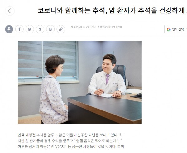 [한국경제TV]코로나와 함께하는 추석, 암 환자가 추석을 건강하게 보내는 방법
