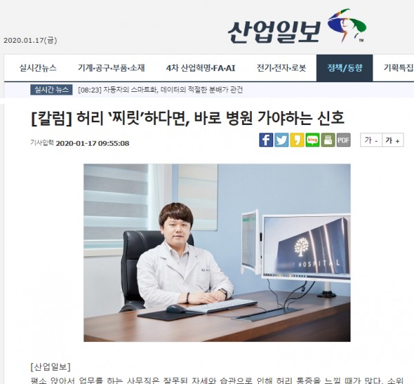 [산업일보]허리 ‘찌릿’하다면, 바로 병원 가야하는 신호