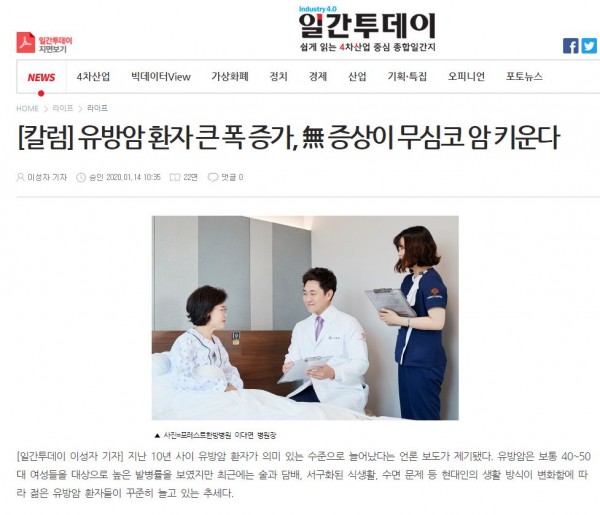 [일간투데이]유방암 환자 큰 폭 증가, 無 증상이 무심코 암 키운다