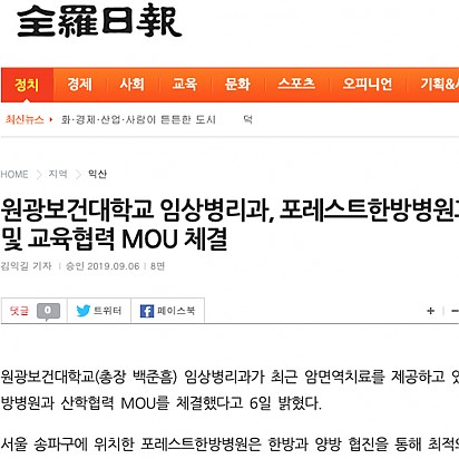자궁내막암 3기, 박지혜 환우님의 희망일지 ep_1 | 포레스트 환우 이야기 2024.08.08 자궁내막암 3기, 박지혜 환우님의 희망일지 ep_2 | 포레스트 환우 이야기 2024.08.08 자궁내막암 3기, 박지혜 환우님의 희망일지 ep_3 | 포레스트 환우 이야기 2024.08.08 폐암 4기(비소세포암), 서중원 환우님의 희망일지 ep_1 | 포레스트 환우 이야기 2024.08.08 폐암 4기(비소세포암), 서중원 환우님의 희망일지 ep_2 | 포레스트 환우 이야기 2024.08.08 폐암 4기(비소세포암), 서중원 환우님의 희망일지 ep_3 | 포레스트 환우 이야기 2024.08.08 Hot [헬스경향] 포레스트한방병원, SCI급 국제학술저널 논문 등재 포레스트한방병원이 11일 이대연 병원장, 이인희 연구소장의 공동 연구 논문이 9월 SCI급 국제학술지에 등재됐다고 밝혔다. … 2021.05.18 Hot [이투데이] 포레스트한방병원, SCI급 국제학술저널 논문 등재 이대연 포레스트한방병원 병원장과 이인희 연구소장의 공동 연구 논문 ‘Herbal Medicine FDY003 Inhibits … 2021.05.18 Hot [Queen] 포레스트한방병원, 암 환우들을 위한 '힐링원예테라피'개최 포레스트한방병원이 지난 25일 암 환자들을 위한 ‘힐링 원예테라피’를 개최했다. 포레스트한방병원은 매일 무서운 질병과 싸… 2021.05.18 Hot 추석연휴, 암 환우들이 주의해야 할 식단은? 암환우 추석연휴 식생활 포레스트한방병원 영양팀을 통해 추석 연휴동안 암환자가 주의해야 할 사항에 대해 알아보았습니다. … 2021.05.18 Hot 전라일보,국제뉴스,대학저널,대학신문.-원광보건대학교 임상병리과, 포레스트한방병원과 연구 및 교육협력 MOU 체결 원광보건대학교(총장 백준흠) 임상병리과가 최근 암면역치료를 제공하고 있는 포레스트한방병원과 산학협력 MOU를 체결했다고 6일 … 2021.05.18 Hot [서울 송파] 암 전문 포레스트한방병원에서 고주파온열암치료를 받아보세요 [서울 송파] 암 전문 포레스트한방병원에서 고주파온열암치료를 받아보세요 2021.05.18 Hot <메디컬투데이> 포레스트한방병원, 원광보건대와 연구 활성화 위해 산학 협력 MOU 체결 포레스트한방병원은 지난 20일 원광보건대학교와 연구, 산학 협력 MOU를 체결했다고 21일 밝혔다. 포레스트한방병원과 원… 2021.05.18 Hot <오가닉라이프신문>항암 병행 치료로 암환자 면역력 높인다 [포레스트한방병원] 자궁경부암은 자궁의 입구인 자궁경부에 발생하는 여성 생식기 암이다. 자궁경부암은 다른 암종과 다르게 비교적 발병 원인이 뚜렷한… 2021.05.18 Hot 암환자, 여름철 면역력 관리에 각별히 힘써야[포레스트한방병원] 우리 몸에는 하루에도 수 천개의 암세포가 생성된다. 그러나 모든 암세포가 다 암으로 발전하는 것은 아니다. 체내의 면역력에 의… 2021.05.18 3132 Search 검색대상 제목 내용 제목+내용 회원아이디 회원아이디(코) 글쓴이 글쓴이(코) 검색어 필수