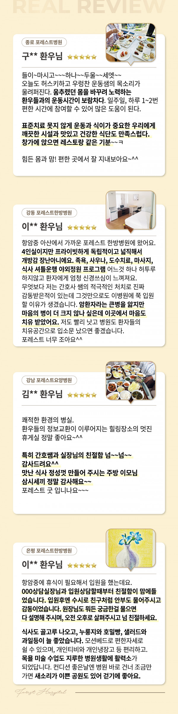 포레스트를 경험한 환우분들의 진심 어린 리뷰를 통해 확인해보세요.