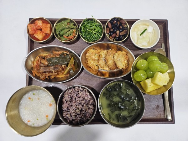 잡곡밥/연두부죽/미역국/우사태찜/