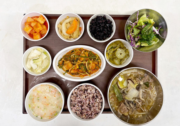 잡곡밥/야채죽/소고기버섯전골/아구찜/