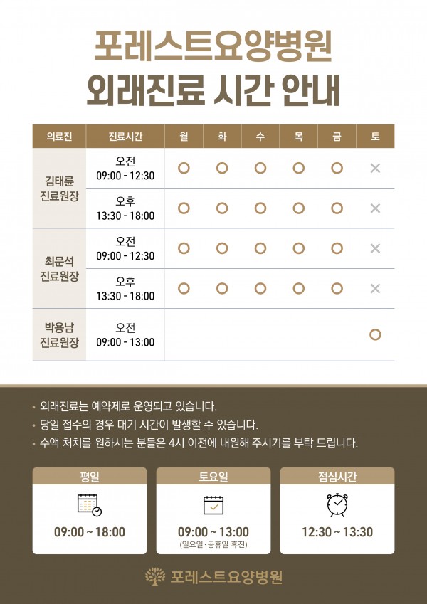 포레스트 2023년 7월 외래진료시간표
