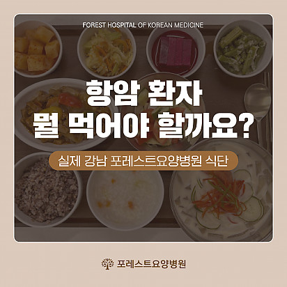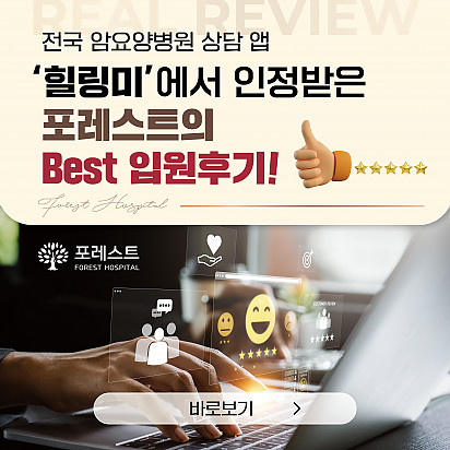 Hot 강남 포레스트요양병원에서 실제로 제공되는 식단 강남 포레스트요양병원에서 실제로 제공되는 암 환자 식단을 담았습니다. 균형 잡힌 영양소와 소화에 … 2025.08.26 Hot 은평 포레스트 병원장의 마음속 이야기 ”어떻게 해야 아픈 사람의 자리를 덜 외롭고,덜 무섭게 만들 수 있을까?“은평 포레스트 한방병원 이철희 병원장은이 질문을 매일… 2025.08.14 Hot 포레스트 8월 광복절 휴진 안내 [ 포레스트 8월 광복절 휴진 안내 ] 2025년 8월 15일 (금) 강남 포레스트는 광복절 휴진입니다. 진료 및 내원 … 2025.08.07 Hot 이 보라색이 면역력을 살립니다?! 가지에 숨겨진 힘 보라색 채소의 대표 주자, 가지! 그냥 먹으면 손해?! 암 예방에 도움을 줄 수 있는 '파이토케미컬'의 비밀과 가… 2025.07.24 Hot 초복을 담은 포레스트의 여름 밥상 안녕하세요, 포레스트입니다♥ 초복, 여름의 시작을 맞아 정성 가득한 보양식을 준비했습니다. 지친 몸에 활력을, 떨어진… 2025.07.22 Hot 힐링미에서 인정받은 포레스트 입원후기 암 요양병원 상담 앱 힐링미에서 인정받은 포레스트 입원후기를 소개합니다. 환자 한 분, 한 분의 상황에 맞춘 맞춤 치료… 2025.07.01 Hot 이달의 포레스트 얼굴을 소개합니다! 의료의 중심엔, 사람이 있습니다. 이달의 포레스트 얼굴을 소개합니다. 포레스트는 ‘사람 중심’의 의료를 실천합니다. … 2025.06.24 Hot 포레스트, 늘 곁에 있는 치료의 이름 안녕하세요 포레스트입니다. 지금까지 약 62,312명 이상의 소중한 환자분들이 포레스트의 진료를 경험하셨습니다. 전국 모… 2025.06.02 Hot 강남 포레스트 봄나물 면역식단 [강남 포레스트 봄나물 면역식단을 소개합니다] 자연이 선물한 식재료로 정성껏 준비한 한 끼, 기분 좋은 포만감과 활력을 더해… 2025.05.20 12345 Search 검색대상 제목 내용 제목+내용 회원아이디 회원아이디(코) 글쓴이 글쓴이(코) 검색어 필수