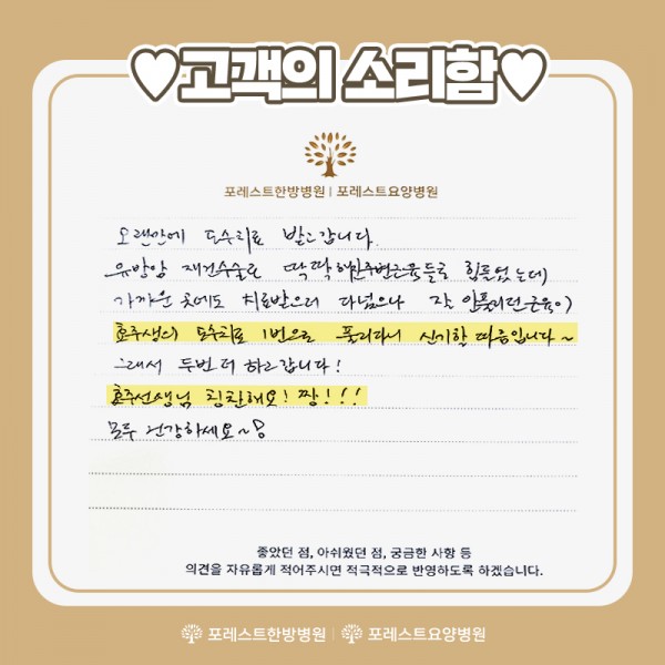 환우분들을 최우선으로 생각하는 포레스트가 되겠습니다♥♡♥♡