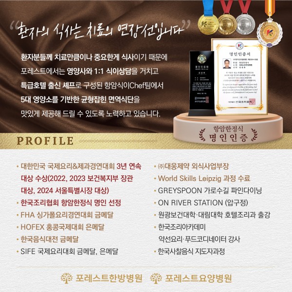 앞으로도 건강하고 맛있는 면역 식단을 제공하는 포레스트한방병원이 되겠습니다.