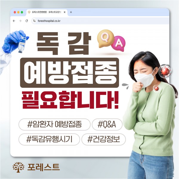 최근 독감 예방접종이 시행되고 있는데요, 특히 암 환자에게는 독감으로 인한 합병증의 위험이 높아,