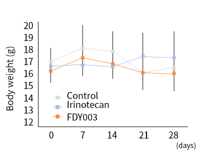 TAF(FDY003)는 동물실험 통해 종양 억제 효과 검증 完. 종양 억제 확인 및 동물 체중 변화 無.