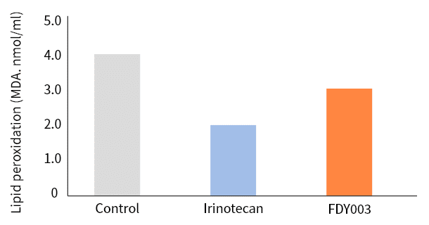 동물 혈액 채취 後 암을 유발시킬 수 있는 과산화지질 확인 결과 TAF(FDY003) 투여 동물 과산화지질이 감소 검증 完.