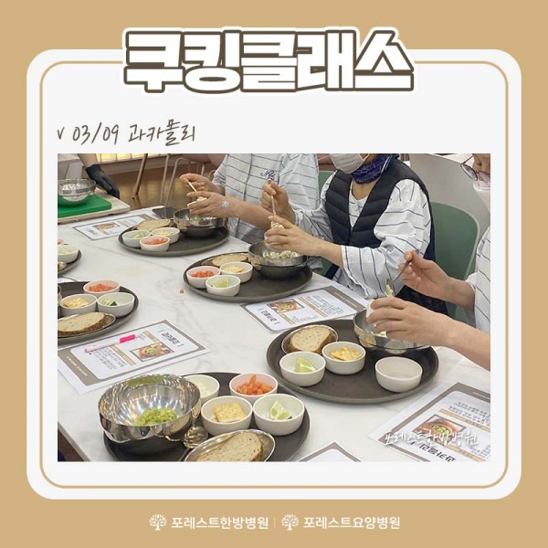 포레스트한방병원, 포레스트요양병원에서 매주 진행하고 있는 쿠킹클래스입니다.