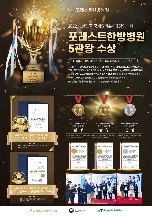 포레스트한방병원 그룹 2022 국제 요리경연대회 '보건복지부 장관 대상 등 5관왕 수상'